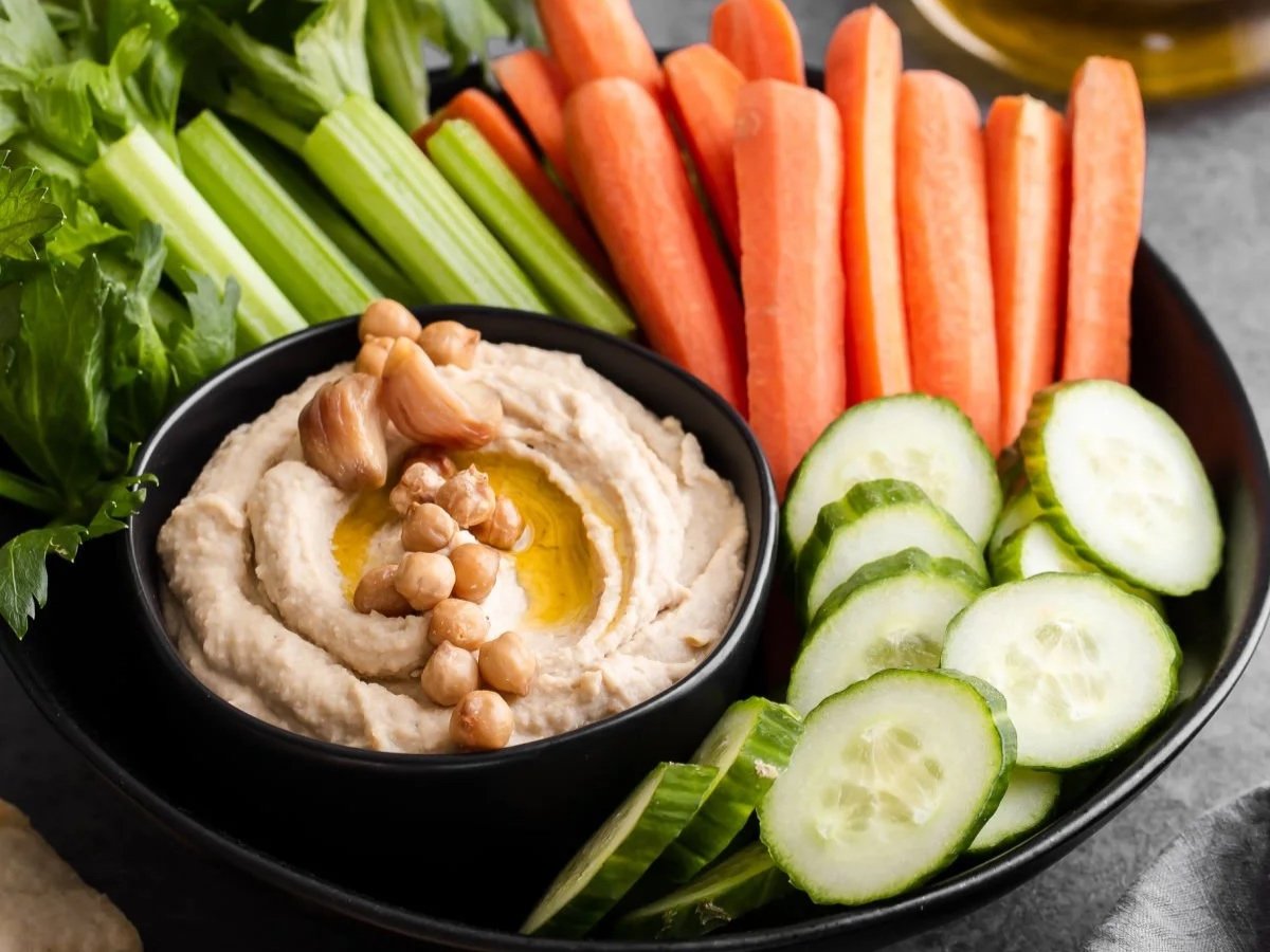 Carrots, Cucumbers, Cherry tomatoes, Hummus